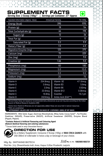 Crea Gainer is an advanced mass-building supplement designed to fuel your muscle growth and amplify your strength. Packed with high-quality proteins,